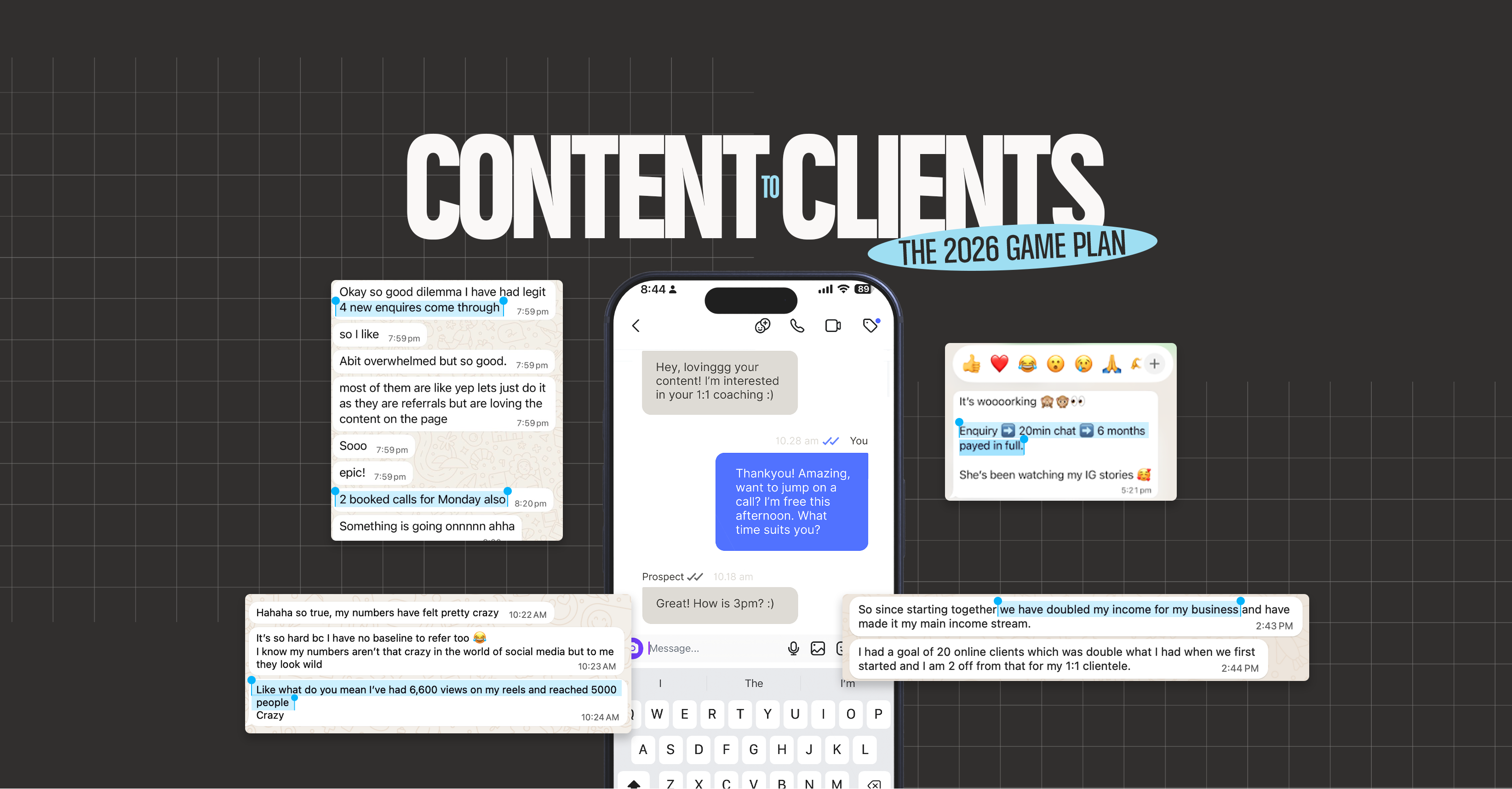 Get marketing insights from Ash and Sales Advice from our sales rep who has made over 250k in the last 6 months through DM selling. Learn how to convert in DMs, handle sales conversations, and market your business with confidence.